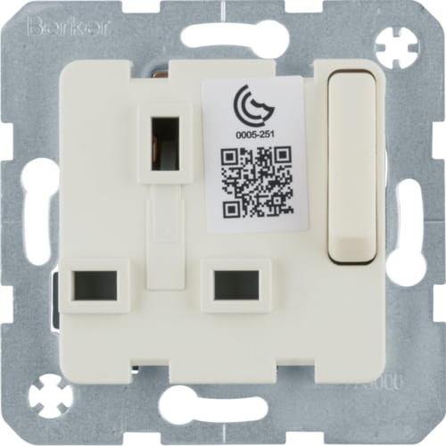 B.Kwadrat Mechanizm gniazda z uziemieniem standard Brytyjski z łącznikiem i przesłonami styków, kremowy połysk Berker 53420212