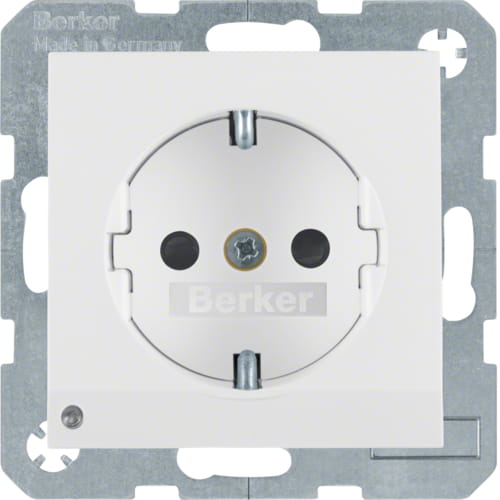 B.Kwadrat/B.3/B.7 Gniazdo SCHUKO z uziemieniem z podświetleniem orientacyjnym LED, biały, połysk Berker 41098989