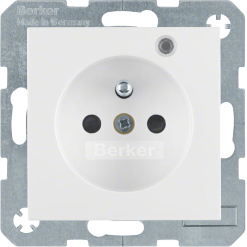 B.X/S.1 Gniazdo z uziemieniem i LED kontrolną z podwyższoną ochroną styków, biały Berker 6765098989