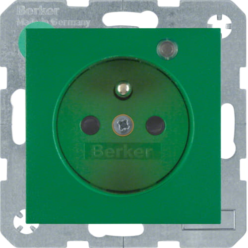 B.x Gniazdo z uziemieniem i LED kontrolną z podwyższoną ochroną styków, zielony Berker 6765091913