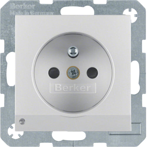 B.x Gniazdo z uziemieniem i podświetleniem orientacyjnym LED, aluminium mat, lakierowany Berker 6765101404