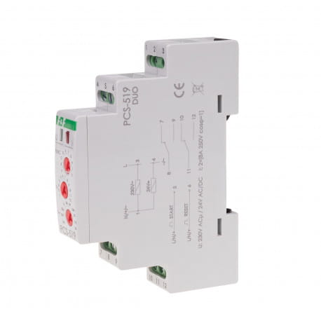 i następuje odmierzanie nastawionego czasu pracy „t” (świeci LED czerwona). Ponowna realizacja trybu pracy przekaźnika możliwa jest po odłączeniu napięcia zasilającego i ponownym jego załączeniu.