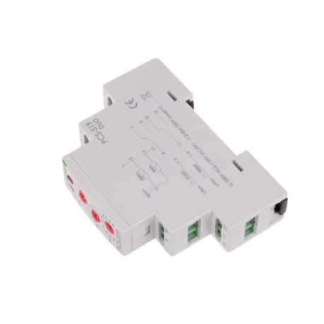 Do czasu załączenia przekaźnika wyjście pozostaje otwarte. Po podaniu napięcia zasilającego (świeci LED zielona) wyjście zostanie zamknięte