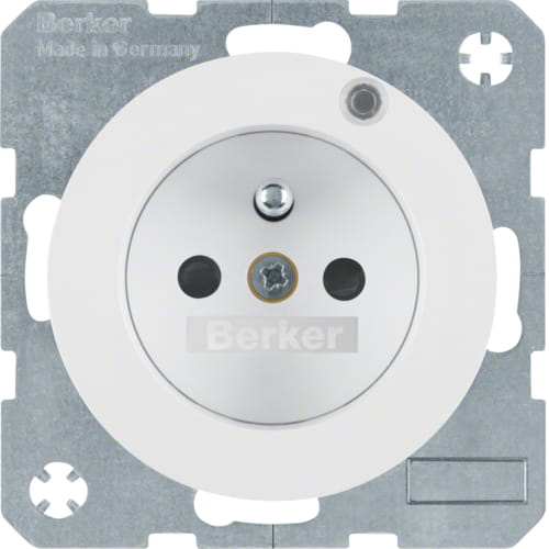 R.1/R.3 Gniazdo z uziemieniem i diodą kontrolną LED, biały, połysk Berker 6765092089