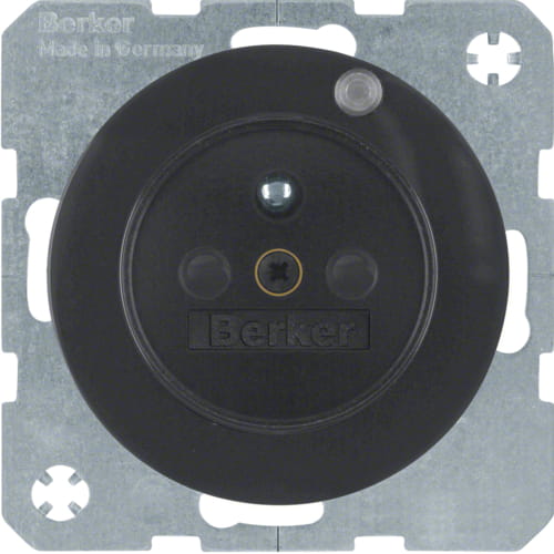 R.1/R.3 Gniazdo z uziemieniem i diodą kontrolną LED, czarny, połysk Berker 6765092045