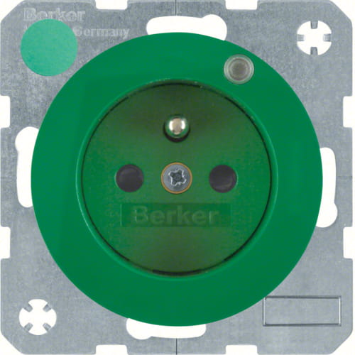 R.1/R.3 Gniazdo z uziemieniem i diodą kontrolną LED, zielony, połysk Berker 6765092003