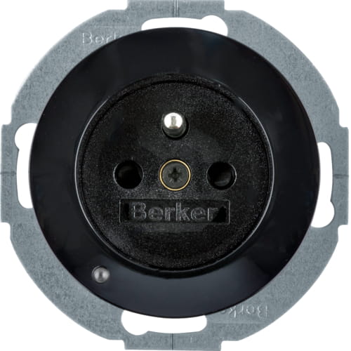 R.1/R.3 Gniazdo z uziemieniem z podświetleniem orientacyjnym LED, czarny Berker 6765102045