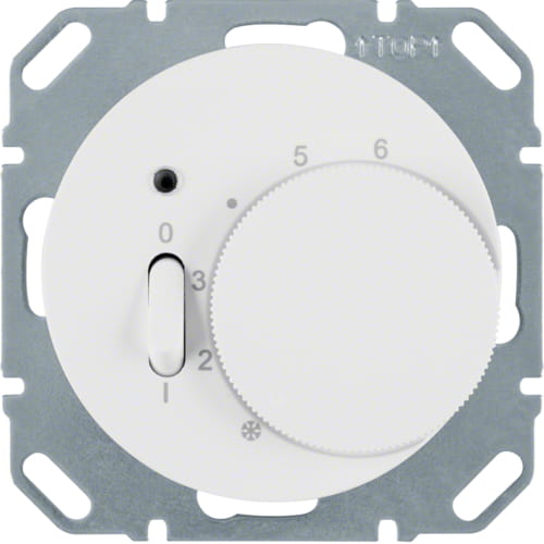 R.1/R.3 Regulator temperatury pomieszczenia ze stykiem zwiernym, elementem centralnym, łącznikiem i diodą biały Berker 20302089