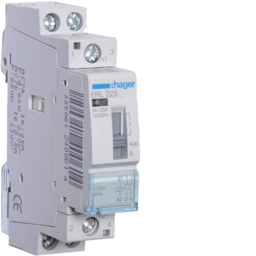 Stycznik z możliwością sterowania ręcznego 12VAC 2NO 25A Hager ERL225