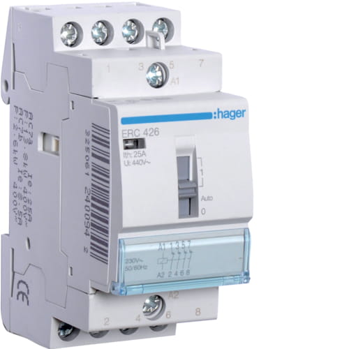 Stycznik z możliwością sterowania ręcznego 230VAC 4NC 25A Hager ERC426