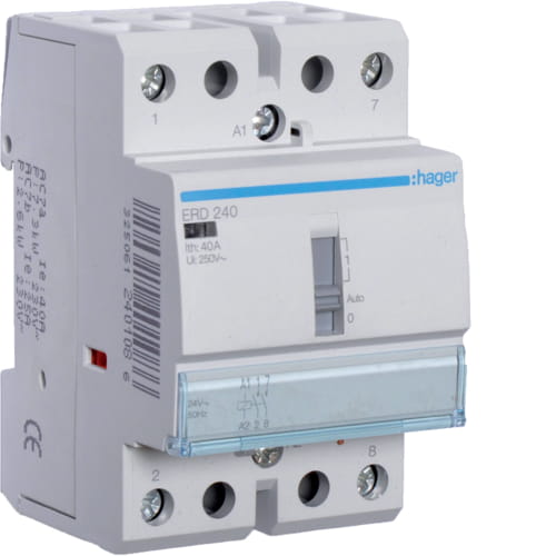 Stycznik z możliwością sterowania ręcznego 24VAC 2NO 40A Hager ERD240