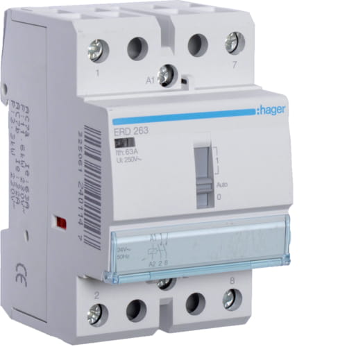 Stycznik z możliwością sterowania ręcznego 24VAC 2NO 63A Hager ERD263